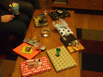 In the middle of cooking and cleaning the house, I took a break to wrap- Eat, Memory- for our yearly book exchange!