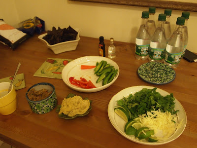 Blue corn chips,veggies, and dips for snacking.... I forgot to take a picture of the soups!