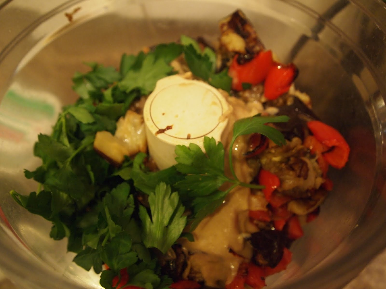 I also wanted to get ahead of my book group cooking for Wednesday so I made roasted eggplant dip while the butternut squash was cooking.