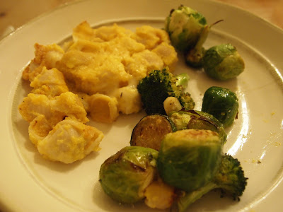 While the mac and cheese was cooking I roasted some broccoli, zucchini, and brussel sprouts.