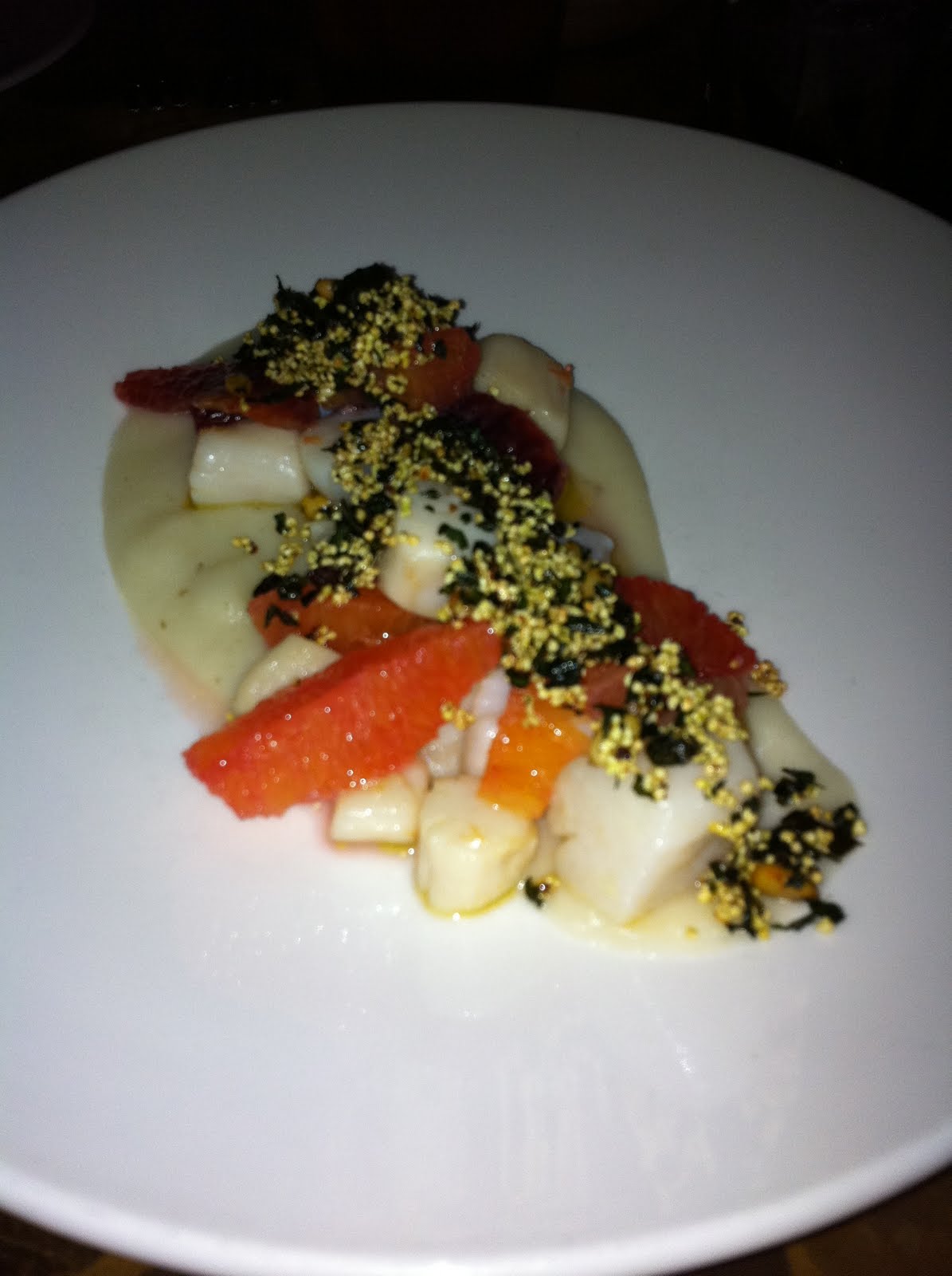 Local Scallops with a parsnip base and sesame seeds(night special)